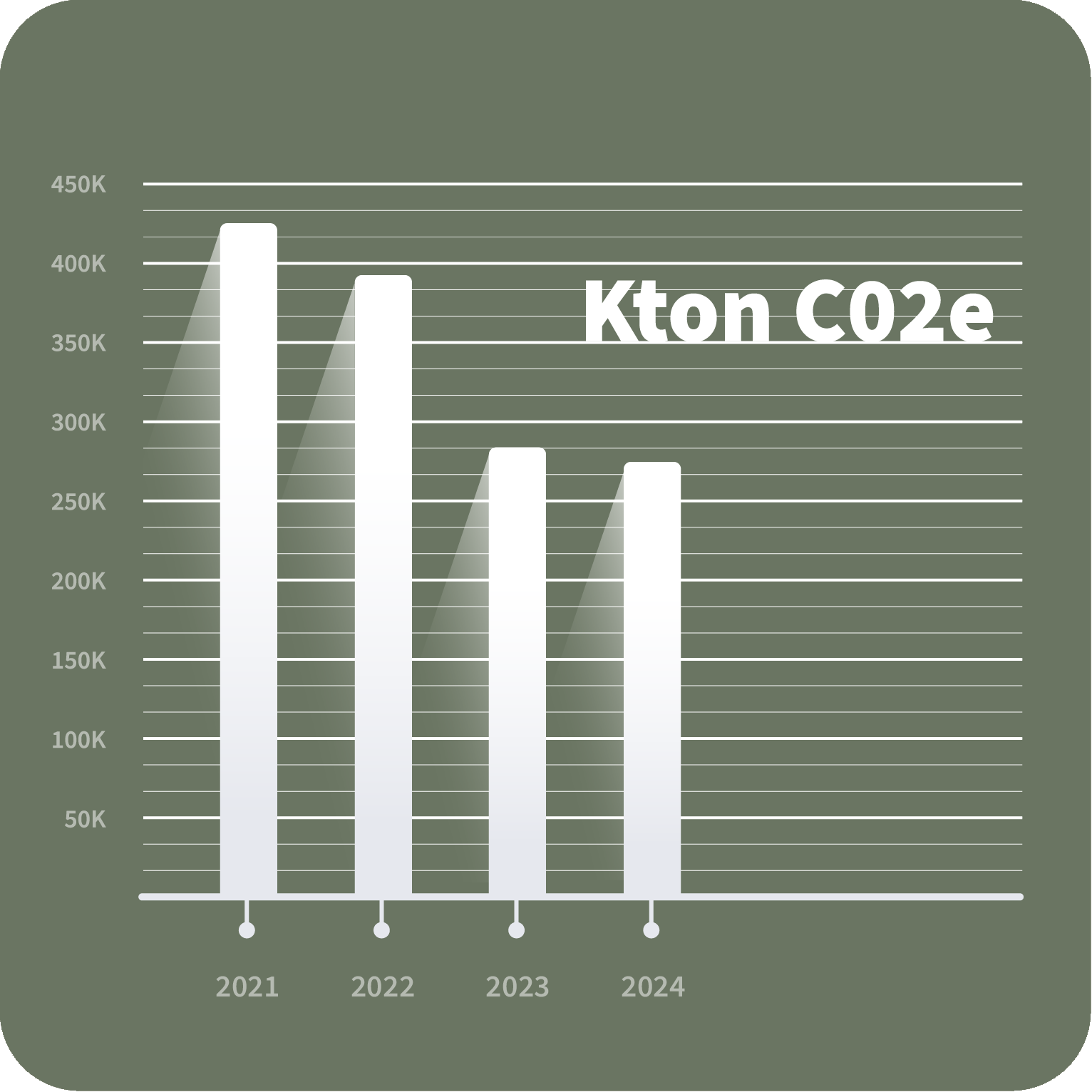 In the graphs, the green bars represent a linear reduction in emissions from our baseline year 2021 to 2030, which is the reduction rate required for us to meet our targets during the period. The white bars show the actual outcome for each year.
