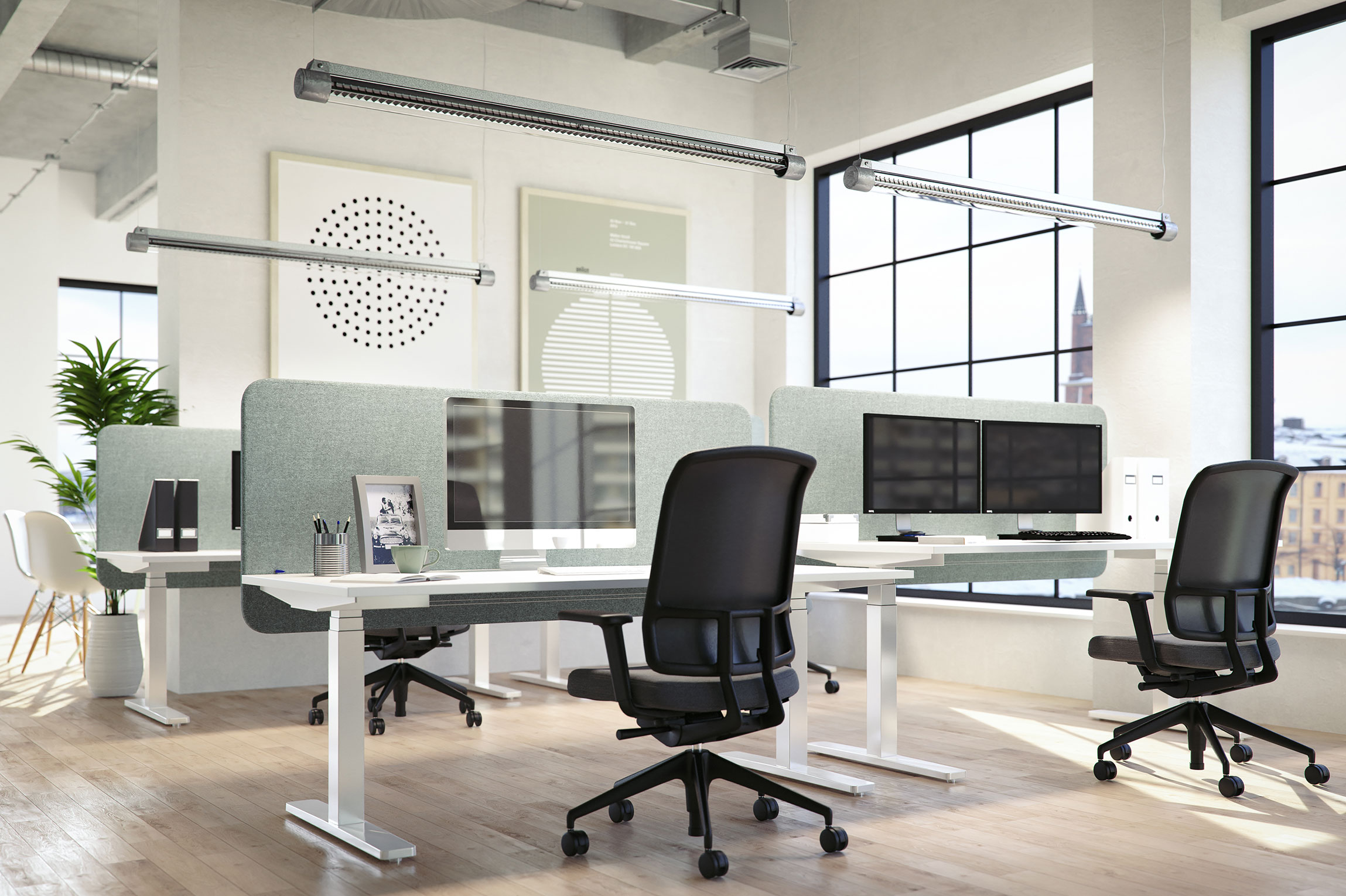 A flirt with the shape of the old fluorescent lamp, but in a modern and urban shape. That is the Pondero; a pendant luminaire in a body of untreated steel with aluminium gables. Already a contemporary classic from Fagerhult. The tube shaped body is equipped with LED and Beta Opti louvre, granting a high lighting comfort. The with a well-balanced light distribution (direct/indirect: 93/7) it is adapted for rooms without an underneath ceiling.
