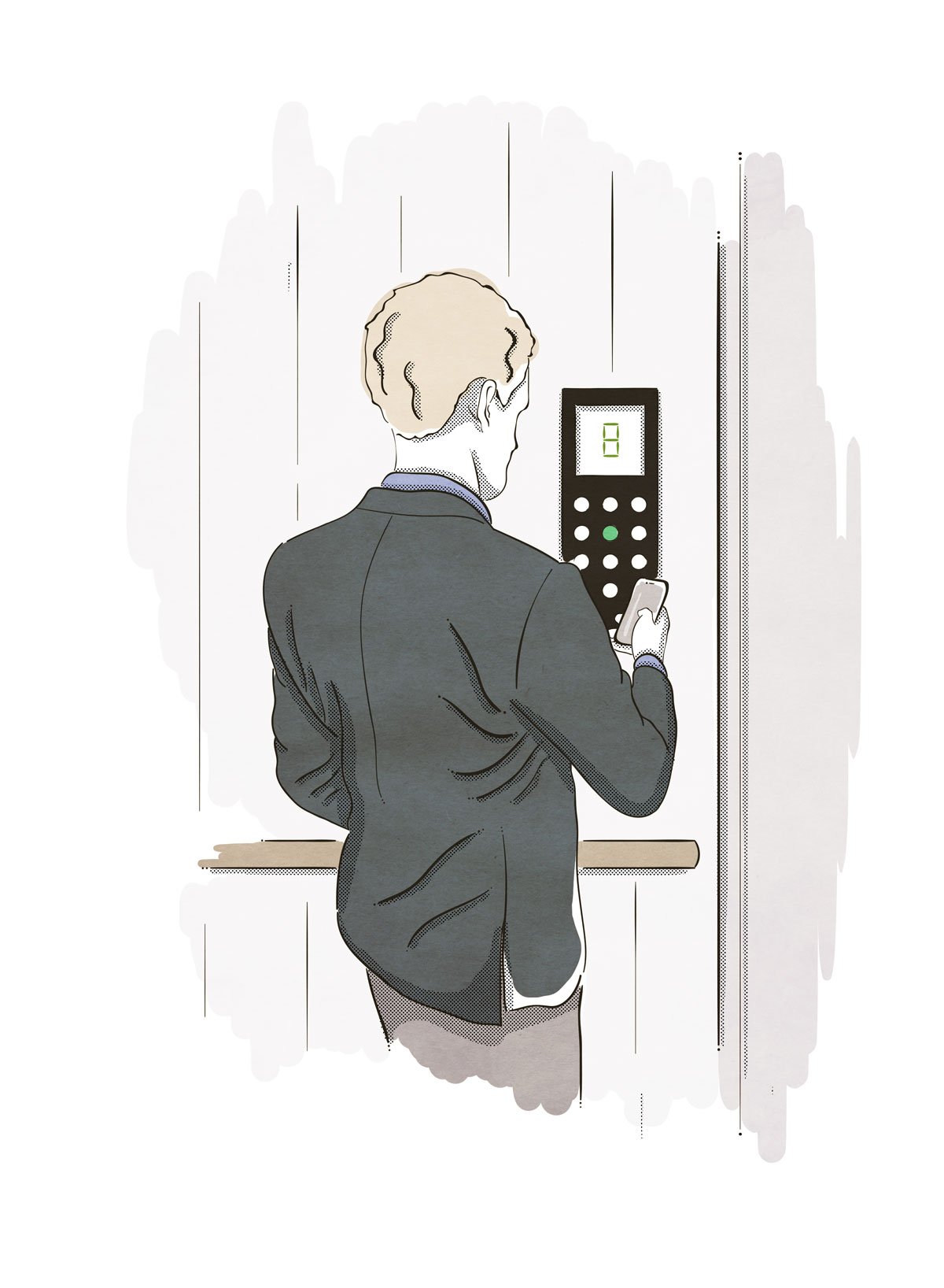 In the elevator, located by the smart luminaire in the office, your phone notifies you that your colleague, who tried to contact you yesterday, is at his desk. You head straight there. Following a short discussion, you move on to your office.