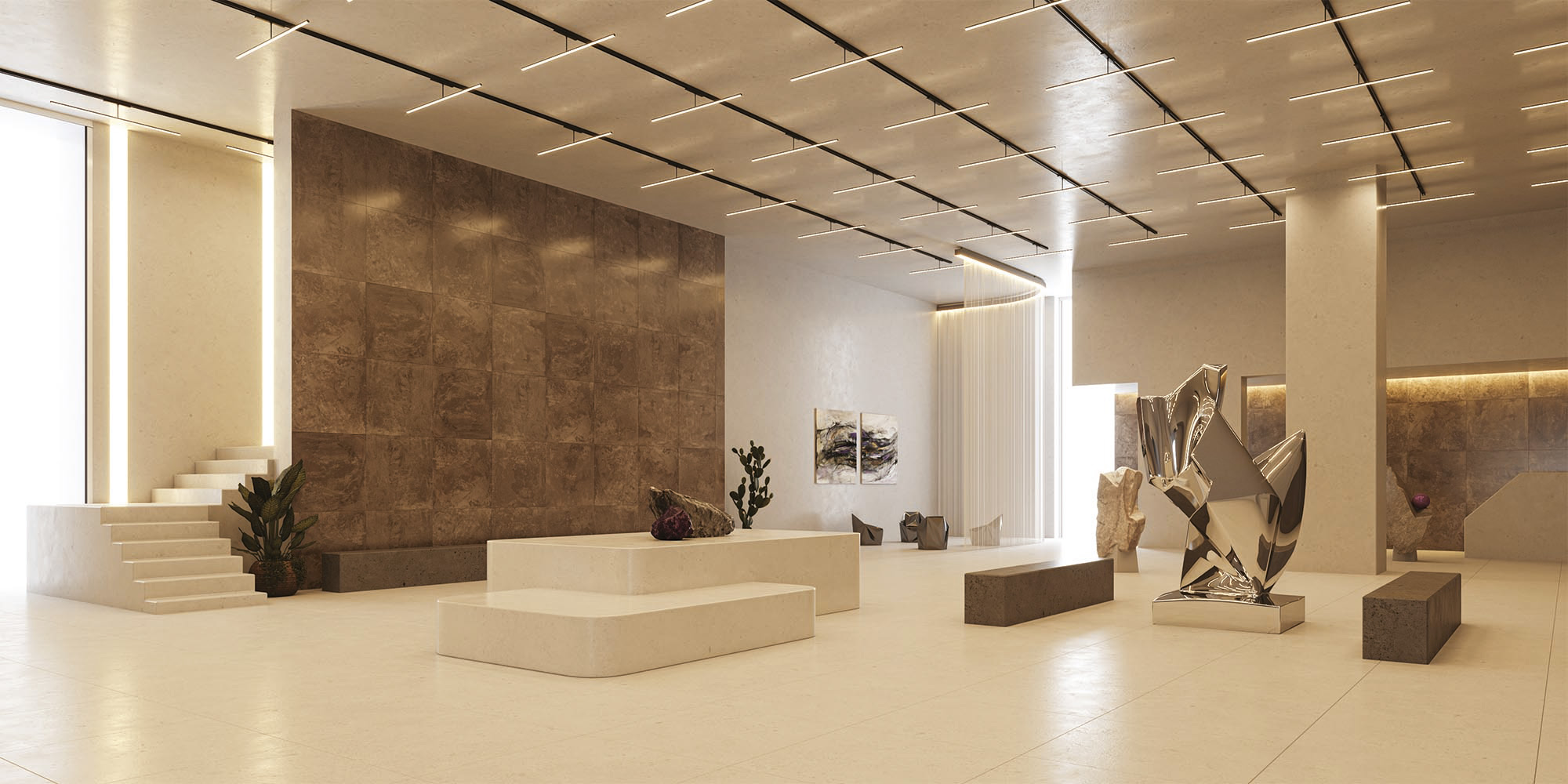 ”We wanted to make sure that this world we’ve created was a perfect one, down to the floor mats. We’ve designed our own products, integrating the building’s geometric shapes into the design.”