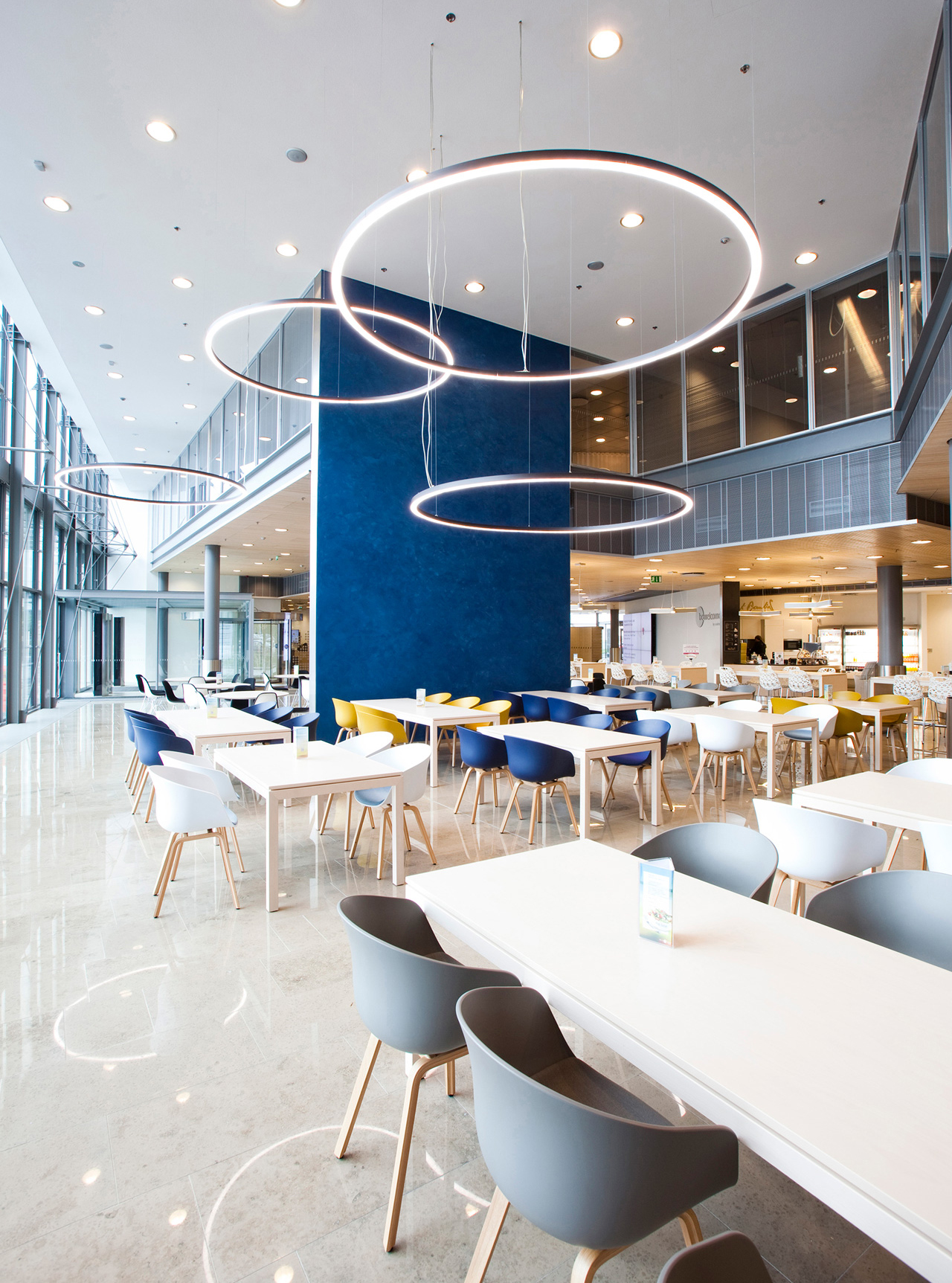 In hospitality environments, lights are on 24/7. Make sure that the lighting is easy to maintain – broken lamps will certainly lower the overall impression. With its long life and low maintenance requirements, LED is perfect in this type of environments. Pre-set lighting scenarios are easy for the staff to manage and help create the right mood for every situation.